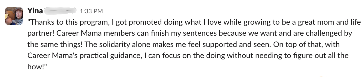 Introducing Career Mama – the leadership accelerator for high-performing moms who want to earn recognition, get promoted, be present for their kids – without the overwhelm. The tools inside are backed by real strategy, real results, and real moms doing it in real time with kids in tow. With the right support, you can have your big successful career AND show up as the mom you truly want to be.